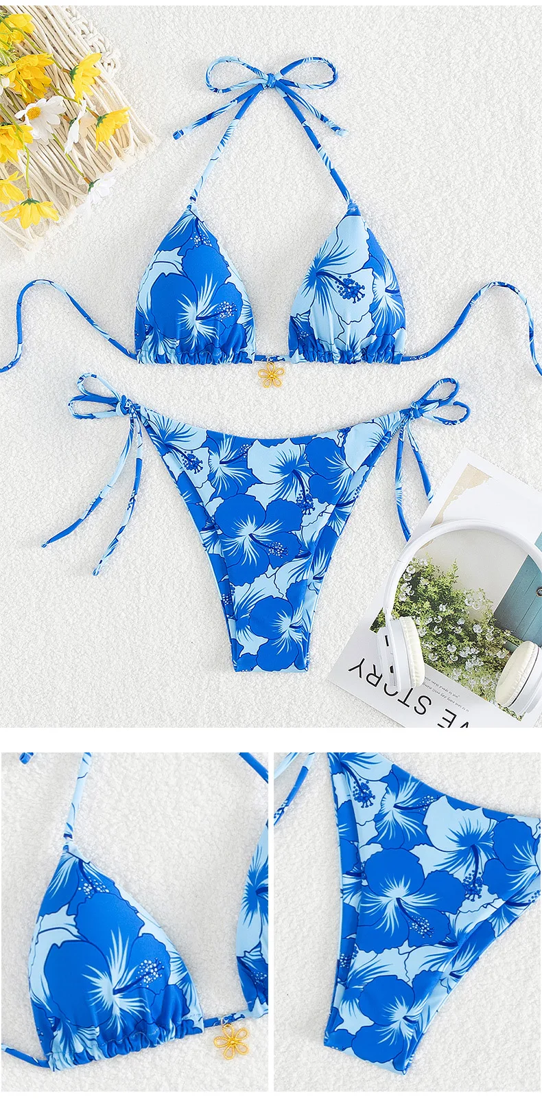 Concebido para realçar a sua silhueta e proporcionar conforto, este biquíni de duas peças com um design triangular sexy e detalhes de atacadores é a escolha ideal para os seus dias ensolarados e de praia.